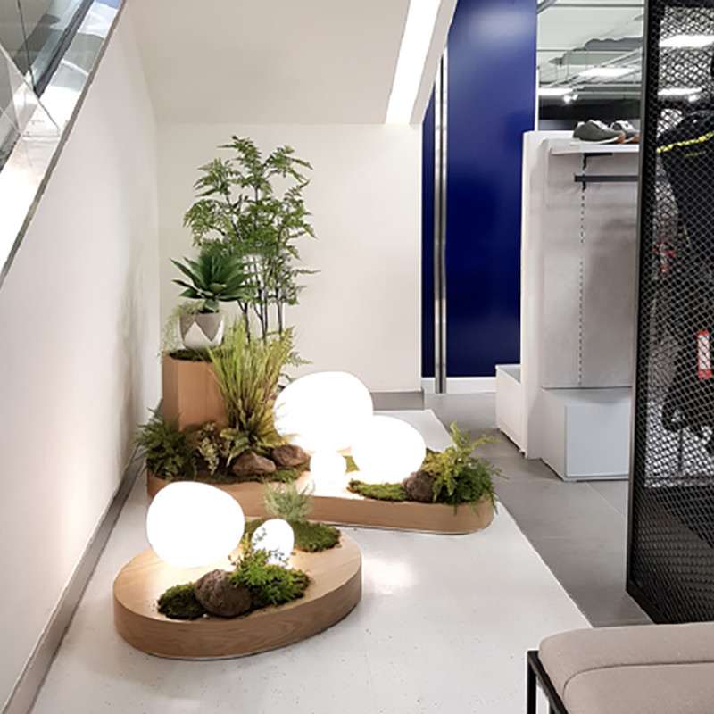 둥근 조명 안마당 장식의 설계와 인공 풍경 식물