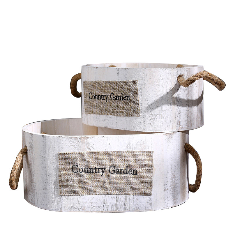 아메리칸 스타일 오래된 즙이 많은 화분 하얀 나무로 된 직사각형 라운드 고향을 그리는 복고 스타일